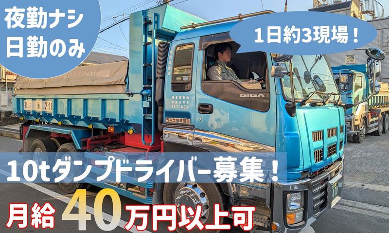 仕事内容 \長距離・夜勤にサヨナラ!/ ダンプ経験を活かして "ムリなくしっかり稼ぐ"ならココ! ❖関東近県の土砂回収ルート配送❖ ―・―・―・―・―・―・―・―・― ─ ─ ─ ─ ─ ─ ─ ─ 東京都内や関東近県の建設現場から 土砂を回収し、捨て場へ運搬します。 1日3現場ほどで、毎日帰宅◎ 「これ以上、長距離続けるは無理…」 「手積み・夜勤・待機がしんどい…」 「でも、運転の腕を活かして稼ぎたい!」 という方は、ぜひ最後までご覧ください。 ──────────────── ⭐経験を活かし続けやすい環境⭐ ──────────────── ✅大型免許があれば年齢不問 ✅1日約3現場で生活リズム安定 ✅積み込みは重機、手作業なし ✅荷下ろしは自動操作で対応 ✅親会社案件メインで安定 ✅日勤のみで私生活との両立◎ ✅月収40万円以上も目指せます ┏━━━━━━━━━━━━━━┓ ❖安定した受注体制の会社です ┗━━━━━━━━━━━━━━┛ 当社はダンプ運搬を専門に行い、 都内および近郊の建設現場を中心に 業務を展開しています。 日中帯のみの運行で、無理のないスケジュールが魅力。 今の働き方を見直したいダンプ経験者に こそ選ばれている会社です。 ────────────────── ………⭐具体的な仕事内容⭐……… ────────────────── 大型ダンプを運転し、 建設現場で発生した土砂を 捨て場まで運搬していただきます。 …<業務の流れ>… ▨現場で重機による積み込み ▨捨て場で荷台を傾けて荷下ろし ▨現場と捨て場を1日3往復ほど これまで培ってきた 運転の経験を活かしながら、 落ち着いて取り組める業務内容です。 ────────────────── ………⭐1日の仕事の流れ⭐……… ────────────────── ✅出勤・点呼・アルコールチェック ✅現場へ移動し積み込み ✅捨て場で荷下ろし ✅これを1日3現場程度行う ✅帰庫後に点検を行い業務終了 ⏩無理のない運行計画で、 日々の業務に集中できます。 ┏━━━━━━━━━┓ ❖応募をご検討中の方へ ┗━━━━━━━━━┛ ダンプ運転の経験を活かし、 働き方を見直したい方に 適した職場です。 経験者同士だからこそ、 希望に合った働き方を 一緒に考えることができます◎ まずはお問い合わせください。