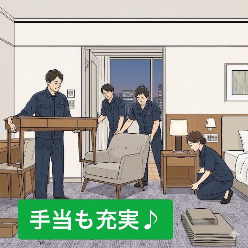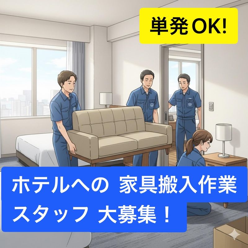 仕事内容 \未経験歓迎!/ ホテルやオフィス、商業施設へ家具や什器の搬入・設置作業スタッフを大募集! 仕事内容は家具を運んで設置するだけ! (もちろん重量物は安全のため複数人で運びます!) 経験やスキルが不要な簡単な内容です♪ 期間限定でサクッと稼げますよ◎ ◇日給10000円(毎月10日以上勤務の方) ◇日給9000円(単発バイト希望の方) ◇1日8時間勤務(休憩1時間) ◇遠方でのお仕事は宿泊手当や移動費あり ✨給与保障制度あり! 仕事が早く終わった場合でも 実働8時間分の日給を保障します♪ 移動手当が発生するお仕事は プラスで手当分もしっかりと支給あり◎ ✨手当が充実 ・ドライバー手当:最大2500円 ・現場移動手当:250~700円 (作業場所による) 応募後は登録会にて作業員としてご登録後にお仕事開始となります。 ▶登録会場:〒060-0041 北海道札幌市中央区大通東7-18-5 ノースシティエンジニアビル1F ✅仕事の流れ 事務所に集合(出発10分前集合) ↓ 会社の車を使い、作業場所へと移動 ↓ ホテルへ家具の運搬・設置 (搬入先が1日1件だけなのも嬉しいポイント♪) ↓ 作業が終了次第、事務所に帰って解散 応募後は担当のものから電話もしくはメールにてご連絡致します! ぜひ一緒に働きましょう!
