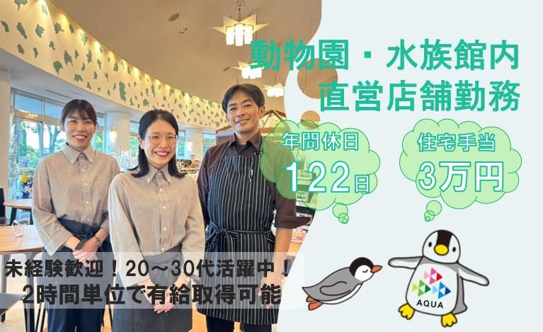 仕事内容 ✅様々な人気施設で働ける総合職! ✅アイデアが活きる職場です ✅年休122日!プライベートも大切に ✅5連休程度の休日も取得可能! ✅住宅手当3万円&家族手当あり <⭐仕事内容について> ¨*¨*¨*¨*¨*¨*¨*¨*¨*¨*¨*¨*¨*¨* 動物園や水族館、資料館のショップや カフェで、店舗運営を行っていただく 「店長候補」の募集です。 始めは接客や調理、 売場づくりからスタート! ゆくゆくはスタッフ管理や 販売計画立案などにも関わりながら、 将来的にはエリアマネージャー にもチャレンジ可能です。 ⭐意欲次第で早期昇格もできます◎ <具体的には・・・> ■ショップ └接客・レジ対応 └在庫・売上管理・棚卸 └パートスタッフ育成 └売り場づくり(レイアウト・商品POP等の作成) └販売計画の立案(上長と計画)など ■カフェ、レストラン └接客・調理・レジ対応 └在庫・売上管理・棚卸 └パートスタッフ育成 └新メニューの立案(チームで実施) └販売計画の立案(上長と計画)など <⭐非日常空間で働けるやりがい> ¨*¨*¨*¨*¨*¨*¨*¨*¨*¨*¨*¨*¨*¨* 動物園や水族館、資料館という “特別な場所”で働けるレア求人。 お客様の「楽しかった思い出」を 最後に彩るのがショップやカフェの役割。 可愛いグッズや、季節ごとの限定メニュー を通じて、笑顔と感動を届けられる、 そんな空間づくりができる仕事です。 <⭐経験より“気持ち”を重視> ¨*¨*¨*¨*¨*¨*¨*¨*¨*¨*¨*¨*¨*¨* 入社後はOJTや研修でしっかりサポート。 店舗運営経験がない方も、 接客が好き・お客様と関わるのが好き という気持ちがあれば活躍できます。 <⭐アイデアを活かして店づくり> ¨*¨*¨*¨*¨*¨*¨*¨*¨*¨*¨*¨*¨*¨* 新メニュー・売場の配置など、 自分の工夫次第でお店の魅力が変わる! 施設の雰囲気に合わせた店舗演出を 楽しみながら働けます。 挑戦を歓迎する社風で、 発信しやすいのも魅力です。 <⭐全国の人気施設での勤務♪> ¨*¨*¨*¨*¨*¨*¨*¨*¨*¨*¨*¨*¨*¨* 最初の配属先は八景島シーパラダイス かズーラシアのことが大半です。 ※経験などによる変動あり 首都圏外だと伊勢シーパラダイスや 旭川市旭山動物園など人気施設が中心。 初めは首都圏の配属先で勤務していただき 仕事に慣れることからスタート! ✅勤務地は希望や適性を考慮します。 入社後成長するまでの期間は、 首都圏ー地方間の異動は極力ございません。