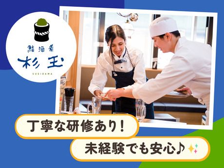 仕事内容 【仕事内容】ホール中心のお仕事 ご来店されたお客さまのご案内や注文のお伺い、料理やドリンクの提供、ドリンク作り、お会計など。勤務時間によっては開店・閉店の準備作業もお任せします。定番のお寿司から「飲めるサーモン」や「赤海老 他人の子持ち」など、味だけではなく見た目やネーミングにもこだわったユニークメニューが多数!※店舗の状況によっては、キッチン業務をお任せする場合もあります <未経験の方OK> 明るく優しい対応ができれば、未経験でも大丈夫。ぜひお客さまとのコミュニケーションを楽しみながら活躍してください!ささいな事でも気軽に質問できる先輩スタッフがいますので、安心してスタートできます♪ 【シフト】時間や曜日は相談OK 時間や曜日が選べる・シフト自由な点がスタッフからも好評!勤務は週1日からOK&短時間勤務(1日2h以内)も可能で時間の融通も利くので、「夕方から働きたい」「平日メインがいい」などライフスタイルに合わせて働きやすいのが特徴です! 【在籍スタッフ】幅広い世代が活躍中 10代から中高年の方まで、幅広い世代のスタッフが活躍中◎家事・育児の合間にシフトに入る主婦(夫)さん、学校が休みの日や授業終わりに働く学生さん、フルタイムでがっつり働くフリーターさんなど属性も様々です! 【ココが嬉しい】お得なまかないあり 勤務日には杉玉自慢のまかないあり♪仕事終わりに、または休憩時間に美味しいまかないを食べられるのが魅力♪ 【私たちについて】いま注目の大衆寿司居酒屋 杉玉は、「食べる前から楽しくなれる」をコンセプトにした、大衆寿司居酒屋です。『飲めるサーモン』『極み寿司』など、味はもちろんSNS映えも意識した遊び心満載のメニューが充実!白シャツ×蝶ネクタイ×デニムエプロンのオシャレな制服など、他にも個性あふれる特徴が目白押しなお店です。