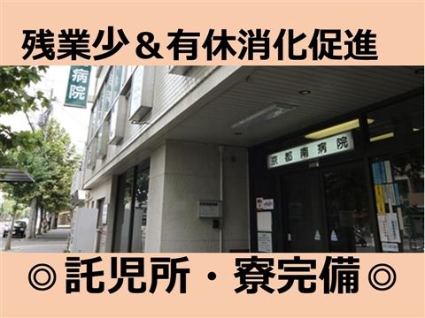 「京都府いきいき働く医療機関認定制度」取得! ★「京都府いきいき働く医療機関認定制度」とは 京都府医療勤務環境改善支援センターにおいて、2017(平成29)年1月より開始された、働きがいのある、働きやすい職場の実現に取り組む医療機関を認定する制度です。 京都南病院グループでは、地域医療に全力で取り組んでいくために患者さんを支える医療スタッフの労働環境の確保・改善が重要と考え、早くからワーク・ライフ・バランスに法人として積極的に取り組んできました。 ◎◎自慢の制度がこんなにたくさん◎◎ ◆1日実働時間は昔から短く7時間(週所定労働時間は35時間)! ◆残業時間は月平均12時間と医療機関としてはかなり少ないです! (急性期の看護部門でさえ月平均10時間未満、日勤は17時半にはほとんど皆退勤しています。 「看護師は残業が多くてあたりまえ」は当グループには当てはまりません) ◆勤怠管理システム導入済。休暇取得状況も把握しやすく、有給が消化できていないスタッフには管理職から取得を促されることもよくあります。 ※看護部門の有給休暇の平均取得日数約14日 ◆勤続表彰として、勤続年数に応じてリフレッシュ休暇や特別賞与を支給しています! ※特別賞与:3年、5年(5万円支給)、7年、10年(10万円支給) ◆非常勤の方も、週20時間以上で社会保険加入可能です! ◆院内保育所完備で働くママさんを応援! ◆全職種対応の職員専用の契約マンションあり! 家賃月3万円/交通アクセス良好/バス・トイレ別/バルコニーあり/オートロック+セコム加入でセキュリティ◎と優良物件で職員からの評判も良いです! ※すべて法人内規定による 【託児所利用について】 ◆費用(給与から天引き) 月1万2000円 ・別途、給食費が1日200円かかります※授乳期は不要 ・日数が15日以下の場合や、一時保育(臨時で預ける)の場合は1日1000円 ・利用日数の1/2以上が午前まで(昼食なし)の保育だった場合は月9000円 ・利用日数の1/2以上が昼過ぎまで(昼食あり)の保育だった場合は月1万円 ◆時間 8:00~17:30(勤務終了まで) <夜間保育> (準夜)16:00~0:30(深夜)0:00~翌9:00 ・月曜、水曜、金曜の夜間のみ実施 ※事前に利用申告が必要 ◆対象年齢 ・日勤帯は2歳まで※夜勤に入る看護職員で継続利用を希望する場合は3歳の誕生日まで ・夜間帯、日祝の休日保育は1歳以上~就学前まで 【勤続特別賞与金制度について】 転職サイト(転職エージェント)を利用せず自身で直接(このサイトからのエントリー含む)応募し採用され、勤続1年経過後に勤務成績等をもとに行われる要件審査に合格した職員に対して、「勤続特別賞与金」を支給します。支給金額は、求人ごとに異なりますので詳細はお問い合わせください。 ※非常勤(保健師、看護師、看護助手、介護職)については勤務条件により支給(法人規定あり)