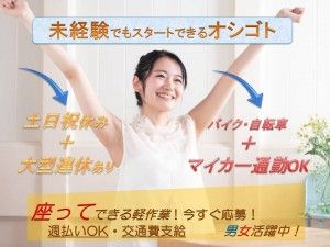 最寄駅から送迎バスも運行中!座りシゴトもあって1人でモクモクできる軽作業です*.,*◎土日祝休み&長期休暇あり⇒年間休日多め♪無料駐車場完備