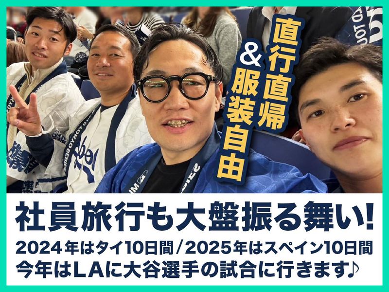 【保険制度】 雇用保険、労災保険、健康保険、厚生年金 待遇・福利厚生 【福利厚生】 歩合(インセンティブ)支給 昇給随時 賞与年2回 交通費全額支給 導入研修・OJT研修 入社祝い金60万円支給 ★◥◣ちなみに、入社後は…◢◤★ 3000名の営業の中で売上1位を受賞した 足立(写真3枚目)があなたに同行! そのノウハウ、思考を学んでくださいね。