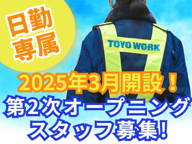 仕事内容 2025年3月開設!日勤専属! 第2次オープニングスタッフ募集! 急ぎ募集です! 「いまだけ!入社した方限定」 「オープニング手当支給」 入社から30勤務まで1勤務1,500円支給! <東洋ワークセキュリティで働くメリット> ・社員総数3,000人の人的資源力 ・技術とサービス品質の向上力 ・全国47拠点による展開力 ・有給休暇取得の平均日数9.7日 ・警備未経験の応募OK!仕事・業界のことを一からしっかり学べる ・平均勤続年数4.75年 ・資格取得支援制度あり(費用会社負担) <交通誘導スタッフのお仕事内容> 電気通信の工事現場にて、高所作業車の前後などで車両や歩行者を誘導・案内するお仕事です。 工事期間が終了しても他の現場が多数あり、ご案内できます! ・駐車場での安全確保 ・工事現場での保安・安全誘導 ・ビル建築工事でのゲート管理 ・道路工事での片側交互通行・通行止め誘導 ・高所作業・クレーン作業周辺での歩行者誘導 ・長期休工期間の巡回警備 ・店舗新規オープン時の駐車場誘導 ・ショッピングモール・コンサートホールなど大型駐車場での車両誘導 ・シャトルバス誘導 ・博物館・美術館の特別展での臨時駐車場誘導 ・ショッピングカートの回収・整頓 など 交通誘導のお仕事は通行人や車両などの安全を守るために社会貢献度が高い仕事になります。若い世代から高齢者でも働ける現場多く、定年後の働き口としても人気の仕事です。 <警備経験ない方もOK> 未経験の方には警備の仕事のことをしっかり覚えてもらうための研修期間を設けています。 若い方から中高年の方まで幅広い世代いつからでも警備の仕事をスタートすることが可能です。 現場では複数名での勤務になりますので、常に誰かがサポートしてくれる環境です。 <働きながら資格が取れます> 働きながら仕事に関わる様々な資格を取得することが可能です。 (資格取得にかかる費用は全額会社負担) 資格を取得すると資格手当の付与、さらに警備の仕事の幅が広がります。 <長期安定で働ける環境> ・新卒 ・第二新卒 ・ミドル、シニア(中高年世代) など幅広い年代のスタッフが在籍しています。 警備は仕事の幅が広く、長期的に活躍できるお仕事です。 隊員の中には女性隊員も活躍しています。 その理由は ・力仕事などの重労働もないから! ・暑い日や寒い日でもスタッフが働きやすいように会社がドリンクや飴など気を使ってくれるから! ・シフトの休みも融通がある程度効くから! など女性でも働きやすい環境を当社は整えております。 <当社からのメッセージ> 東洋ワークセキュリティは、社会の安心・安全を支える警備会社としてプロフェッショナルにふさわしいサービス提供を目指し、現在も成長を続けている会社です。 そのサービス提供を支えている“人財”を育成するため、未経験者でも安心して働くことができるような環境整備を進めています。 このため、応募は経験者・未経験者、性別年齢問わず、60歳以上の方、パート・アルバイトの経験しかない方でもOKです! 警備業界のことは全然わからない…という方でも、ぜひお気軽にご連絡ください。 パート・アルバイトからの転職もOK! 警備業界に興味がある方お待ちしてます!