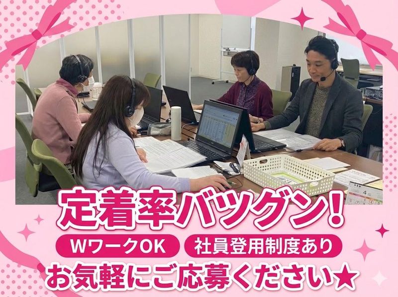 求めている人材 <必須> ✅電話営業やアポイント取得の ご経験をお持ちの方 ✅ブランクOK ✅学歴・年齢不問 ✅主婦(夫)・フリーター歓迎 ✅WワークOK <尚歓迎> ✅長期勤務できる方 ✅週末早番メインでの勤務できる方