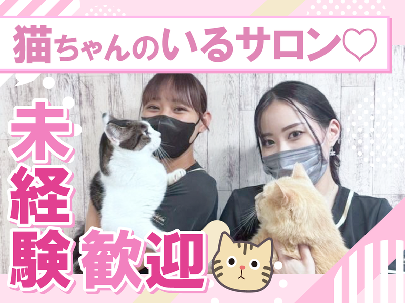 職場環境 ✨南国をイメージしたお店です✨ 【スタッフ数】9名 【男女比】女性 8:2 男性 【平均年齢】26歳 ⏩若手活躍中の職場! リピートのお客様も多く、 アットホームな雰囲気が特徴です◎ サロン内には保護猫ちゃんもいて、 お客様に癒しをお届けしています♪