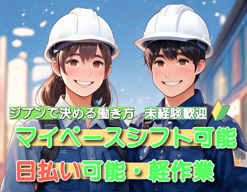 仕事内容 <<新規オープン!オープニングスタッフ募集!>> 《建築現場の清掃・片付け等の現場軽作業スタッフ》 ・LINEなら24時間いつでも面接予約OK! ・履歴書不要!面倒な手続きナシ! ・応募~勤務開始まで最短2日! ・軽作業がメインで極端な肉体労働はナシ! ・日払いOK! ・早上がり日給保障あり ・「資格取得支援」「正社員登用」など待遇充実! <仕事内容> 多能工の仕事とは、現場の清掃片付け・養生・資材移動・職人さんの手元作業と 多種多様なニーズに答える仕事です。 ・軽作業が多いので、極端な肉体労働ではありません。 仕事で体を酷使したくない方もOK! ・難しい道具や技術が必要な仕事ではないので、 稼働2~3日で慣れてくるスタッフも多いですよ! ・未経験者には、1日通して本社で実技研修行います。 ・道具の使い方や、現場アルアルなどしっかり教えるので安心して下さい! ・初日は先輩がマンツーマンで作業を教えます。 <業務量は安定!> 規模の大小を問わず、560社以上の企業と取引があるので、 業務量は安定しています。 ・「働きたいけど案件が無くて・・・」ということはありません 長い目線で安定して働いていくことができます。 ・現場が終わったら次の現場へ!人間関係も煩わしくありません! <勤務地> 勤務地は関東一円に多数! もちろん希望を考慮いたします。 ・現場へは直行直帰OK! ・現場多数 【都内各所/多摩エリア/東京西エリア/城北エリア(板橋区・埼玉方面)/城東エリア(江戸川区・江東区等) 東京南エリア(品川・川崎周辺)】 ・現在マンション大規模改修工事において、東京・神奈川・千葉・埼玉と各所で人手不足です。 - <LINE応募でラクラク> ・「LINE友達登録」で、ID登録せずに簡単に応募・面接予約が完了! ・LINEなら24時間いつでも面接予約OK! ※LINE ID:@197uyesc ※登録後、応募の旨を一言ご連絡いただければ、折り返し致します。 <HPにも当社の情報載っています> https://www.ygb-promotionsupport.com/