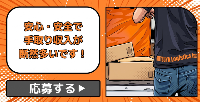 仕事内容 ✨AIが発達しても無くならない宅配業! 一生使える「宅配スキル」を身に着けて お客様の「ありがとう」を収入にしませんか?♪ 下記の配達エリアで募集中です! 中津市:2200個~3000個前後の各コース ◎思いっきり稼ぎたい方! →2700~3000個前後のコース ◎ぼちぼちでいい方 →2000~2300個前後のコース →ご希望に合わせてコース編成OK! ※年2回の繁忙期は物量が1.5倍のエリアもある為 ガッツリ稼げます!! <配達個数が収入に直結> ✅月の報酬:35万~60万円超! ※経験者・協力業者様も好待遇でお迎えします✨ ★安心の1万円日当保証もあります★ 配達エリアを固定!配達ルートやお客様の在宅時間も覚える為、自然と配達効率&収入がどんどんUP!! やる気次第でしっかり稼げます! フォロー体制や人間関係も良好! 離職率も7.1%です♪ 【表面上の大きな金額】<【手元に残る金額】 をとにかく重視しています! ✅高単価:荷物1個あたりが高単価! ✅低コスト:車両リース0円&手数料等も0円! ✅1.車両保険2.任意保険3.貨物保険まで加入済! ✅荷物量:荷物が多くやればやるだけ収入UP! ✅近距離:一日の平均走行距離が30~50km前後! ✅低燃費:リットル12km以上の車両で燃料代も節約◎! ✅ガソリンカードで145円で給油!燃料代も節約! →手取り収入が他社と比べて平均10万円以上UP♪ <収入例>皆さん未経験スタートです! [1]M・Yさん 22歳 前職:工場勤務 稼働2カ月目で556,800円達成!! [2]J・Sさん 28歳 前職:トラックドライバー 稼働3カ月目で434,750円達成!! [3]N・Oさん 34歳 前職:飲食店アルバイト 稼働8カ月目で505,250円達成!! 三ツ矢のみんな仲が良く、楽しい職場です!! 是非、お気軽にお問合せください♪ 【集合場所】 大分県中津市田尻 【応募方法】 まずは一度、お気軽にお問合せ下さい! TEL:06-6543-0328 「中津市の宅配の広告を見た!」 とお伝え下さい。 ※気になる点は何でもお気軽にご相談下さい!!