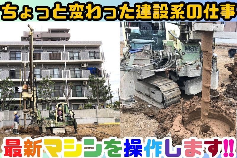 仕事内容 \未経験でも月給33万円スタート!/ 最新専用マシン(重機)を使った “地盤改良・杭工事”のお仕事です。 「建設って体力的にキツそう…」 そんなイメージを持っていませんか? 当社の仕事は、 重たい作業より“機械操作”が中心。 住宅や建物を建てる前に、 地面を安全な状態に整える「地盤改良工事」 マンションや工場・店舗の基礎を支える 「杭工事」を行います。 インフラに関わる仕事なので、 景気に左右されにくく、将来も安定しており 専門的なスキルも身に着けられます。 一度身に付けたスキルはあなただけのもの! 一生の武器になること間違いありません! ■具体的な仕事内容 ・最新専用マシン(重機)の操作 ・専用材料の準備 ・専門作業のサポート業務 ・現場での簡単な補助作業 ・未経験者は補助作業からスタート 先輩社員が丁寧にサポートいたします。 【お仕事のポイント】 ◎未経験でも月給33万円〜 ◎重機メインの作業なので体力負担少なめ ◎創業45年以上の安定企業 ◎インフラ関連で仕事がなくならない ◎資格取得支援あり(収入アップ可能) ◎人間関係が穏やかで定着率高め ◎専門的なスキルを身に付けられる ◎品質・施工管理体制がしっかりしており 安心して作業ができる ◎確かな技術・現場施工によりお客様からの信頼が厚い