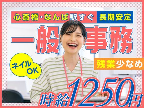 \心斎橋・なんば駅すぐ/人気の”一般事務”何らかの事務経験があればOK!残業少なめ!ネイルOK♪