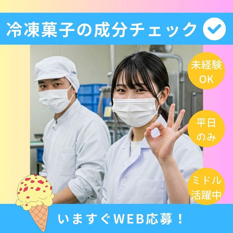 仕事内容 未経験OK◎ アイスクリームの成分をチェック✅ ―――――――――――――― ✨土日祝休み! ✨食堂完備! ✨昼から8Hの仕事!午前はゆっくり♪ ―――――――――――――― 《お仕事の詳細》 ■薬品を使って成分をチェック ■記録表に記入 など、 冷菓菓子工場の製品に含まれている 成分分析のお仕事です。 《未経験でも安心!》 工程はマニュアル化されていて 研修体制もバッチリ! 最初は先輩が横について 丁寧に指導しますので、 未経験でも安心スタート♪ 《食堂完備!》 食堂では冷凍のお菓子が 無料で食べられます♪ マイカー休憩もOK♪ ―――――――――――――― *ハローワークでも掲載中
