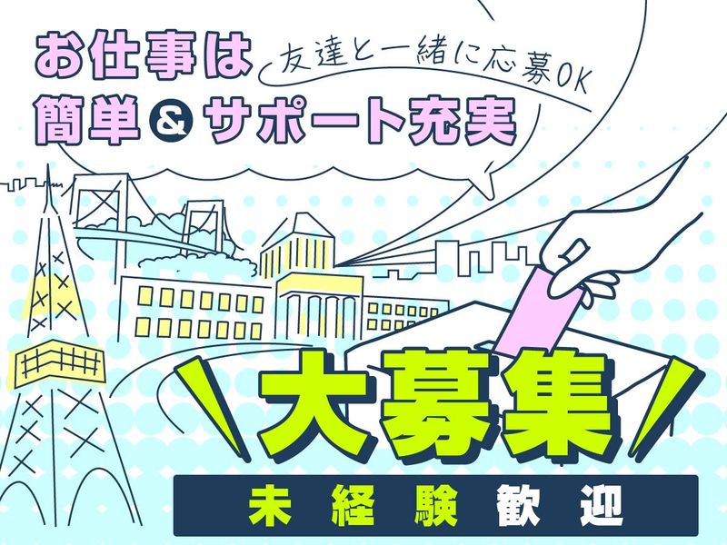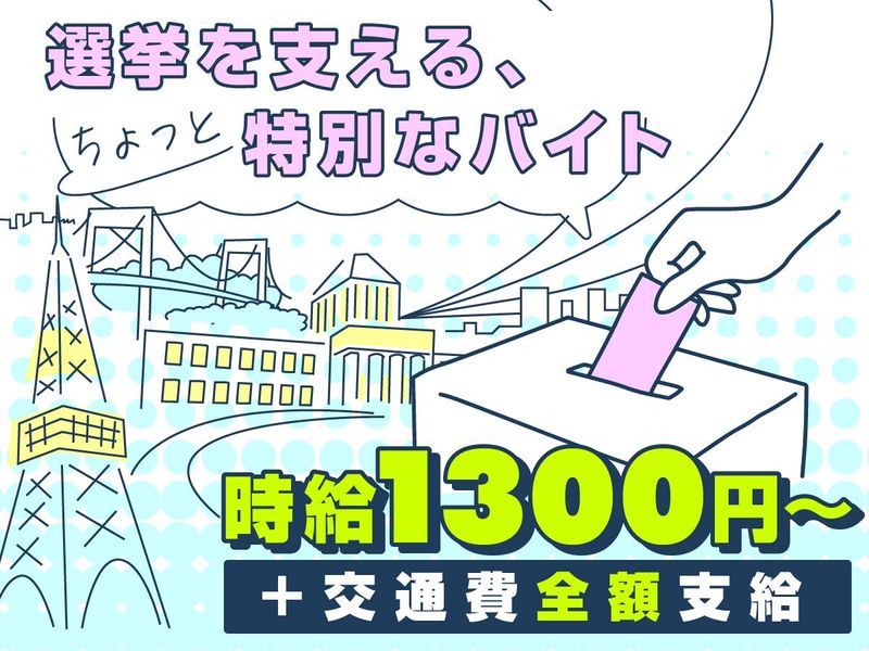 仕事内容 □■□ 単発!2月8日だけ! □■□ 選挙当日の開票スタッフ大募集! □■□■□■□■□■□■□■□■□ ▼短時間・単発・レアバイト!▼ - ●1日4時間だけでサクッと稼げる ●時給1300円+交通費支給 ●未経験歓迎!研修ナシですぐ働ける ●友達同士の応募OK・大量募集 ●社会を支えるレア体験ができる 【選挙開票作業スタッフ】 豊島区内の会場(豊島体育館)で、 選挙の投票用紙を開票するお仕事です。 <具体的には> ・得票の分類、集計業務 ⇒開票所で職員さんと一緒に進めます。 とっても簡単なので、 当日指示を受けて、 すぐに作業を始められます。 分からないことがあれば、 気軽に声をかけて聞けるので 初めての方でも安心ですよ◎ ▼夜の4hだけのお仕事! ――――――――――― 19:30スタートなので 「昼は予定があるけど、夜は空いてる」 という方もサクッと働けます。 \応募のきっかけはなんでもOK/ 「珍しい仕事をしてみたい」 「短期間・短時間で収入が欲しい」 「社会に関わる仕事を体験してみたい」 そんな方にピッタリです! (雇用元:株式会社バックスグループ)