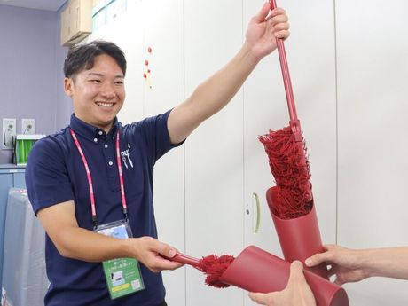 仕事内容 ■求人のおすすめPoint ☆知名度バツグンのダスキンでお仕事 ☆未経験OK!研修充実!定着率90%以上 ☆無理な営業やノルマはありません ☆ご家族都合の急なお休みも対応可能 ☆扶養控除内や副業・WワークもOK ☆残業なし&土日祝休み ☆年末年始・GW・お盆休など長期休暇あり *・。・。*・。・。*・。・。*・。・。**・。・。*・。・。* ■仕事内容 一般のご家庭を訪問し、 お試し用の無料サンプル商品(ハンディモップ、床用モップ等) を渡しながら、よりダスキンを知ってもらうお仕事です。 最初は商品の説明や訪問~ご案内の流れなどを覚えていただき、 その後は先輩スタッフの同行からスタート! ゆっくりあなたのペースでお仕事に慣れていってくださいね。 自信を持ってご案内できるようになるまでしっかりとサポートします。 未経験から始めたスタッフや10年以上のベテランのスタッフなど 頼りになる仲間たちがいるので、心強いですよ♪ 分からないことや不安なことがあれば気軽に質問してくださいね。 ※入社後のキャリアパスは多岐にわたります。 具体的な業務内容や配属については面接にてお伝えします。 *・。・。*・。・。*・。・。*・。・。**・。・。*・。・。*・。・。*・。・。* ■スタッフインタビュー 「PRスタッフ」と聞くとハードルが高いように思い不安でしたが、 実際に働いてみるとそんな心配はすぐになくなりました! お客様にはダスキンの商品を無料でもらえるので喜んでいただけますし 無理なノルマもないので私自身も楽しくお仕事ができています♪/20代女性 子育ても落ち着いてきたので久しぶりのお仕事として始めました。 最初の頃に、子どものお迎えや家庭との両立が心配…という相談をすると 無理なく働けるようにシフトを調整してもらえたり、 急なお休みも快く承諾してもらえたりと融通がききやすいので長く続けられています! 子育て世代が多く活躍しているので子育てへの寛大さには自信がある職場だと思います/40代女性