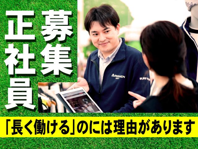 仕事内容 <正社員/ゴルフ用品の販売スタッフ> 業績好調の安定企業で正社員、ゴルフ用品販売・店舗運営スタッフとして働きませんか? 現在働いているスタッフは、ゴルフ好きの方はもちろん、ゴルフ未経験・知識なしからスタートした方も多数おります。異業種からの転職者もOK!まずは気軽に始めてみませんか? 『長く働けるのには理由があります』 『産後パパ育休の取得実績あり!』 男女ともに育休実績があるのが当社の魅力! ライフプランも計画しやすい環境! ////// POINT /////// ・ゴルフ未経験&知識がない方もOK ・店舗数拡大中、業績好調の安定企業 ・販売ノルマ一切無し ・お休みもしっかり(月8日~10日休み) ・20代・30代・40代活躍中 ・キャリアアップを目指せます! ・手当、福利厚生が充実 ・社員割引制度あり ・ゴルフプレー補助制度あり ・男性・女性問わず活躍中 【募集職種】 正社員/ゴルフ用品販売・店舗運営スタッフ <仕事内容> 正社員、販売・店舗運営スタッフとしてゴルフ用品専門店での運営業務全般をお願いします。 ◆具体的には… ・接客(ご案内、お客様対応) ・売場整理(ディスプレイ) ・品出し ・レジ(電話対応あり) など 最初は先輩・社員の横についてカンタンな作業から一緒に覚えていきましょう。 ウェアについて覚えたら次はシューズ、クラブなど徐々に1つ1つ慣れていければ問題ありません! *販売ノルマは一切設けていないので、1人ひとりのお客様に寄り添った接客ができます。 <丁寧な指導で未経験者も大活躍> ゴルフの知識や接客の経験が無い方でもしっかり研修がありますし、勤務中に困ったことがあっても、先輩スタッフがサポートするので安心して働けます! <こんな経験がある方は尚可> 〇ゴルフ用品販売 正社員 〇販売スタッフ 正社員 〇ゴルフショップスタッフ 正社員 〇アパレル販売 正社員 〇営業職 正社員 〇飲食接客業 正社員 〇フロント受付 正社員 <ライフワークバランスばっちり> しっかりお休みしながら稼げる環境です。近年では、産休や育休制度にも力を入れており復帰して働いている社員さんもいらっしゃいます! <キャリアアップも可能> 販売員止まりではなく店長・自社ブランドの開発やバイヤーなど、当社ではやる気次第で多彩なキャリアを歩んでいくことができます。 最短入社して3年で店長に昇格した先輩もおります。 千葉市(中央区・花見川区・稲毛区・若葉区・緑区) 船橋市、野田市等の周辺地域からも 充分通う事が出来ます。 ご不明な点はお気軽にお問合せください。 電話でのご応募も可能です。 〇株式会社 有賀園ゴルフ TEL. 027-328-1299(採用担当まで)