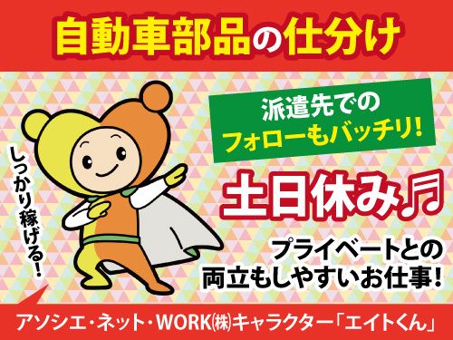 仕事内容 \体を動かす事が好きな方にぴったり!/ 自動車部品の出荷準備をお任せします。 派遣先でのフォローもバッチリ! 働き方も選べるので長期勤務したい方にオススメ! <主なお仕事内容> 〇自動車部品の出荷準備 〇エレカ(電気運搬車両)を使用した運搬作業 などをおこなっていただきます! \おすすめポイント!/ 〇嬉しい高時給!1300円! 〇土日休みなのでご家庭との予定など プライベートとの両立もしやすい! 〇交替勤務でしっかり稼げる! \こんな方に向いています/ 〇倉庫内作業にちょっと興味がある方 〇安定して長く働ける職場を探している方 〇夜勤や交替勤務に抵抗がない方 〇新しいことにチャレンジしたい方 皆さまが長期安心して働けるように 充実した待遇でお待ちしてます! 最後までご覧いただきありがとうございます! 少しでも興味を持たれた方、 他の仕事も気になる…!という方 まずはお気軽にお問い合わせ下さい。