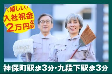 仕事内容 \キレイな大学校舎内/ 午前半日♪日常清掃スタッフ 未経験大歓迎♪男女年齢不問♪ ✅入社祝い金2万円支給♪ (3ヶ月勤務後支給) ✅20代~73歳/幅広く活躍中! 主婦・学生・フリー・シニア活躍中 【勤務地】3駅利用OK♪ 各線/神保町駅より徒歩3分 各線/九段下駅より徒歩3分 各線/水道橋駅より徒歩7分 (千代田区神田神保町3丁目) キレイな私立大学の校舎内♪ 【具体的には】 ・教室/黒板・机等の拭き掃除 ・床面等の掃除機掛け ・トイレの日常清掃 ※時間帯や担当場所等により清掃箇所が異なります。 【勤務時間・曜日】 <選べる時間帯> ①6:30~10:30/4h ★月~土曜内で 週3日~希望応相談♪ (主婦・女性活躍中) ②6:00~10:00/4h(月~金) 6:00~9:00/3h(土曜) ★月~土曜内で 週3日~希望応相談♪ ✅土曜のみ/週1も大歓迎! (男性が活躍中) 【休日・休暇】 日曜・祝日・GW 夏季・年末年始連続休暇有♪ 他大学カレンダーによる休み有 ・扶養控除内もOK♪ ・WワークもOK! ✅難しい作業や重い機材使用無し ✅親切丁寧な研修で安心スタート ★複数名で勤務するので何かと安心!一通り慣れたら担当箇所を中心にコツコツ作業可 ✅学生さんも大歓迎! 授業に間に合うよう相談可能♪ ✅中高年・シニア世代大活躍中!