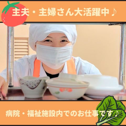 【パート】業務経験のある調理補助さん大募集♪50~60代の方も活躍中♪ 調理補助業務の1日の流れ〈一例〉 出勤→昼食盛付→配膳→休憩→昼食の洗浄→おやつ準備→おやつ配膳→夕食盛付→配膳→清掃→夕食の洗浄→退勤 ◇ベネミールについて◇ 当社は病院・福祉施設内の厨房をお借りし、食事提供を行う「給食業務受託業者」です。 「食は命のもと、生きる喜びをも支えるもの」を基本方針に、心を込めた食事の提供の為 召し上がられる方お一人お一人と日々向き合って業務を行っています。