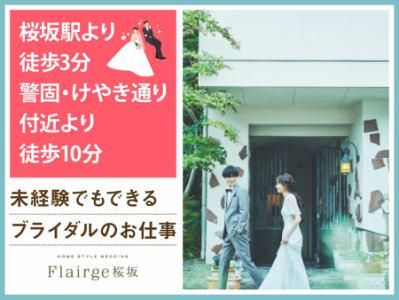 仕事内容 *一軒家貸切のホームスタイルブライダル会場* 感動いっぱいの結婚式を一緒にサポート♪ 授業やサークルのない日に勤務OK★ WワークOKで学生スタッフ多数活躍中! 「人が喜ぶ姿が好き」「サプライズが好き」 という方必見!スキルや経験は一切不要♪ 一緒に素敵な結婚式を演出しましょう* フレアージュ桜坂は 4階建ての一軒家を貸し切った ホームスタイルの結婚式場。 ウェディングのお手伝いをするお仕事です◎ <主なお仕事内容は…> 結婚式場スタッフとして 次のお仕事をお任せ! ■会場の準備 ■お客様の上着や荷物のお預かり ■お席のご案内 ■結婚式のお料理・ドリンク提供 ※キッチン業務はありません◎ ―――――――――――――――― 学生が活躍中! オススメポイントはこちら★★ ―――――――――――――――― ・頑張りをしっかり評価する環境! ・絶品のまかないアリ(^^) ・授業やサークルとの両立応援! ・週1日~1日4時間~OKで融通◎ ・同世代が多くて安心◎ まかないは本格料理人たちが 美味しい食材を使って作ってくれます♪♪ <社員さんがフレンドリー!> 一人ひとりを大事にしてくれる雰囲気で、 「働かされてる…」という感覚ナシ! だからこそ結婚式のやりがいがスゴイ! 現在アルバイト・パートは10名! 学生アルバイトが8割で多数活躍中! フリーターも1名在籍しています! (男女比:男性2:女性8) 社員は会場全体で15名、サービスに2名(30代)が在籍中! 一度バイトを始めると長く 続けてくれる子が多いフレアージュ桜坂。 敷居が高いイメージがあるかもしれませんが みんなで協力しながら準備して… 毎日、文化祭みたいな雰囲気なんです♪ 素敵な仲間に出会える そんな場所になると思います◎ お友達同士の応募も大歓迎です! ブライダルは土日がメインなので、 平日は自分の時間をゆったり過ごせます◎ ついでに… 社会で活躍するためのマナーも学べますし、 実は就活に役立つのもうれしいポイント! ―――――――――――――――― 特別な1日をサポートするお仕事 具体的な仕事の流れは? ―――――――――――――――― ▶STEP.1 ミーティング 披露宴の流れやお料理について スタッフ間で事前に確認して 式中にバタバタしないようにします◎ ▶▶STEP.2 披露宴会場の準備 お席に置く名札や ゲストの方に渡す引き出物を確認したり グラスを磨いたりして準備します。 ▶▶▶STEP.3 お客さまのお出迎え 荷物をお預かりし、 待合室でドリンクをお出しします! ▶▶▶▶STEP.4 ホール業務 お席にご案内し、順番にお料理や ドリンクを提供します◎ ―――――――――――――――― 未経験者歓迎! みんなで助け合う雰囲気です ―――――――――――――――― 最初は結婚式の見学からスタート! 見学後は本番じゃないところで、 同世代を集めて研修を実施。 飲食業やホールスタッフが 初めての子には、 お盆の持ち方から教えます!