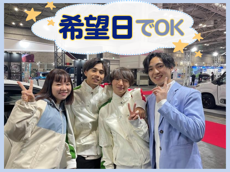 仕事内容 >> 100名以上の大募集! << 楽しく働ける!登録制バイト! 単発・短期・週末だけ・毎日OK .:*:・'★―――――――――――――― コンサートや各種イベントの 受付・案内・グッズ販売、 夜間会場設営などをお願いします。 *「学校が休みの土日だけ」 *「子どもが学校にいっている平日だけ」 *「今だけの短期バイトとして」 *「このイベントだけ!今日だけ!」 …などの参加も大歓迎! 登録制なので 都合のいい日に働くことができますよ! 「短期でいっぱい稼ぎたい!」 「思い出に残る楽しいバイトがしたい!」 一緒にイベントスタッフしませんか*。・ 学生大歓迎!友達同士の応募も大歓迎! ================== <東海エリアに勤務地多数!> イベントたくさん! ⭐…超人気案件&大量募集!! ================== <ポートメッセなごや> *クリエイターズマーケット…5/5~6 *中部どてらい市…5/14~16 *INTERMOLD…5/20~22 <バンテリンドーム> *男性アイドルコンサート…4/20~22 *プロ野球運営業務…プロ野球開催期間中あり <久屋大通広場> *ベルギービールウィークエンド…4/24~5/10 <スカイエキスポ/Aichi Sky Expo> *アイドルトークイベント…5/2~3 *モータースポーツイベント…5/9~10 *カードゲーム大会…5/9~10 *ROBOT TECHNOLOGY JAPAN…6/11~13 *人とくるまのテクノロジー展…6/17~19 *AGTS農業展…6/23~25 <モリコロパーク> *うまいもの祭り…4/29~5/10 *YONFES…6/20~21 <和合カントリークラブ> *中日クラウンズ…4/30~5/3 <大高緑地公園> *FREEDOM…5/17~18 <ラグーナ蒲郡> *森道市場…5/22~24 <豊田・岡崎周辺> *ラリージャパン…5/28~30 <富士スピードウェイ> *SUPER GT…5/3~4 *スーパー耐久…6/5~6/7 .:*:・'★―――――――――――――― 「大人気のフェスやコンサート」 「話題のイベント」 「大人気スポーツイベント」 「レアな展示会」 などを間近でサポートするチャンス! 4月以降も案件はたくさんあります!! ――――――――――――――★'・:*:. ★お給料は銀行振り込みなので、受取の手間や紛失の心配もなく安心です◎