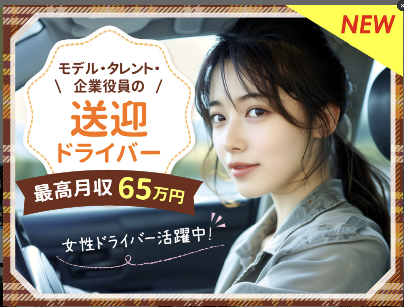 ノルマなし/月収65万円以上可能/著名人を送迎するレア求人/ドライバー経験3年以上対象/1週間ごとのシフトサイクル