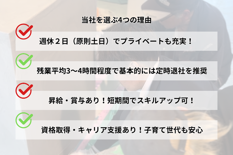アピールポイント: 【当社で働く魅力・企業ビジョン】 当社は今、「第二創業期」を迎え、組織化を進めています。社長含め2人しか指導者がいない現状を打破するため、高い技術とマネジメント能力を持つ、「現場の顔」となる方を必要としています。社長のビジョンは組織の安定化と技術力の強化。あなたには現場の最高責任者として、長年培われた技術を若手に伝え、新しい組織の形を創り上げていく役割を期待しています。経営者との距離が近く、現場の意見がダイレクトに経営に反映される環境で、あなたの経験を『会社の未来』に変えてください。