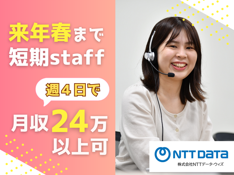 選考プロセス <Web面接1回のスピード選考!!> 応募 ▼ 面接1回(WEBで実施) ▼ 入社! ※入社日:1/15または2/3を予定。 3月末または4月末までの短期です。 ※以降も入社日あり。お気軽にご相談ください。 ■採用本部/東京都江東区豊洲3-3-9 豊洲センタービルアネックス4F ※面接時はカジュアルな服装でOK ※就業先は上記とは別のオフィスビル(西新宿のオフィスビル)です。 ※ご質問等は下記にて受け付けております。お気軽にお問合せください。 フリーダイヤル:0120-366-651(平日9:00~17:30)