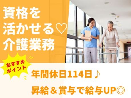 <★介護資格者募集!>シフト制☆月9日以上の公休あり◎年間休日114日♪