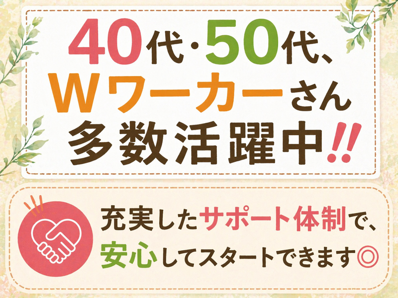 仕事内容 ┏★━━━━━━━━━━━━┓ 土日のみもOK♪ 受付メインの簡単なお仕事 ┗━━━━━━━━━━━━★┛ \無理なく働きたい方にピッタリ◎/ 40~50代の女性スタッフ中心に活躍中! 「平日は自分の時間に使いたい」 「本業や予定と両立しながら働きたい」 そんな方に選ばれています♪ 週末だけの勤務や Wワークとして働く方も多く、 無理のないペースで続けられる環境です◎ ◥◣ この仕事のポイント ◢◤  ̄ ̄ ̄ ̄ ̄ ̄ ̄ ̄ ̄ ̄ ̄ ̄ ̄ ̄ ✅土日いずれか週1日~勤務OK → 予定に合わせて無理なく働ける ✅受付・ご案内が中心のシンプル業務 → 営業や難しい説明は一切なし ✅PC作業なし・専門知識不要 → ブランクがある方も始めやすい ✅直帰OKで負担少なめ → 勤務後はそのまま帰宅可能 ◥◣ お任せするお仕事内容 ◢◤  ̄ ̄ ̄ ̄ ̄ ̄ ̄ ̄ ̄ ̄ ̄ ̄ ̄ ̄ 新築住宅の販売会場にて、 受付・ご案内業務をお任せします。 ご来場されたお客様へ 資料をお渡ししたり、 会場内の簡単なご案内を行うお仕事です。 お客様への詳しい説明や契約対応は 社員が担当するため、 サポート業務に集中できます◎ 人と接するお仕事ですが、 専門的な知識や経験は必要なく、 落ち着いて対応できれば問題ありません。 ◥◣ スタッフインタビュー ◢◤  ̄ ̄ ̄ ̄ ̄ ̄ ̄ ̄ ̄ ̄ ̄ ̄ ̄ ̄ ■40代女性(入社6ヶ月) 平日は自分の予定があるので、 土日だけ働ける仕事を探していました。 難しい業務はなく、 受付やご案内が中心なので、 久しぶりの仕事でも 安心して始められました。 自分のペースで無理なく続けられるので、 今では生活のリズムの一部になっています。