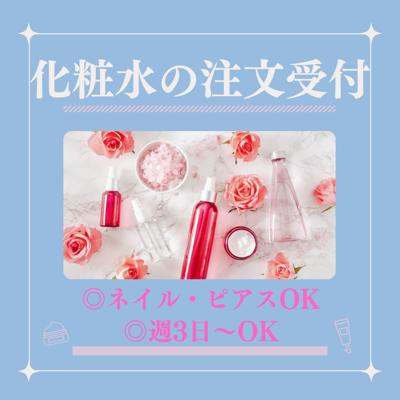 仕事内容 ≪仕事内容≫ 化粧水や美容液、健康食品の 注文受付やデータ入力をお願いします。 ≪具体的には…≫ 通販サイトの注文受付をしているコールセンターにて、 電話での注文受付をお願いします。 (1)注文受付 電話にてお客様の氏名、住所、連絡先を確認し、配達日を調整します。 対応した履歴を専用のシステムに入力していただきます。 (2)各種変更受付 お届け日の変更、住所変更など、各種変更依頼を受け付けし、 変更内容を専用のシステムに入力していただきます。 ≪研修について≫ 研修日程は入社いただく方の都合に合わせて随時調整可能です。 ≪この求人のポイント≫ ●未経験者も続々と入社してます! →入社いただく方の7割は未経験からスタートしています。 ●毎週入社日があります! →随時入社いただけますので、都合も合わせやすいです。 ●扶養内、Wワーク・副業として働きたい方も活躍中! →シフト融通が利きやすいお仕事なので、家庭や本業などとの両立もやりやすい♪ ●服装、髪型、髪色、ネイル、ピアス、タトゥーなんでも自由! →オシャレを楽しみたい!個性は大事にしたい!など希望が叶う職場です。 少しでも興味をお持ちになりましたら、まずはお気軽にお問い合わせください!