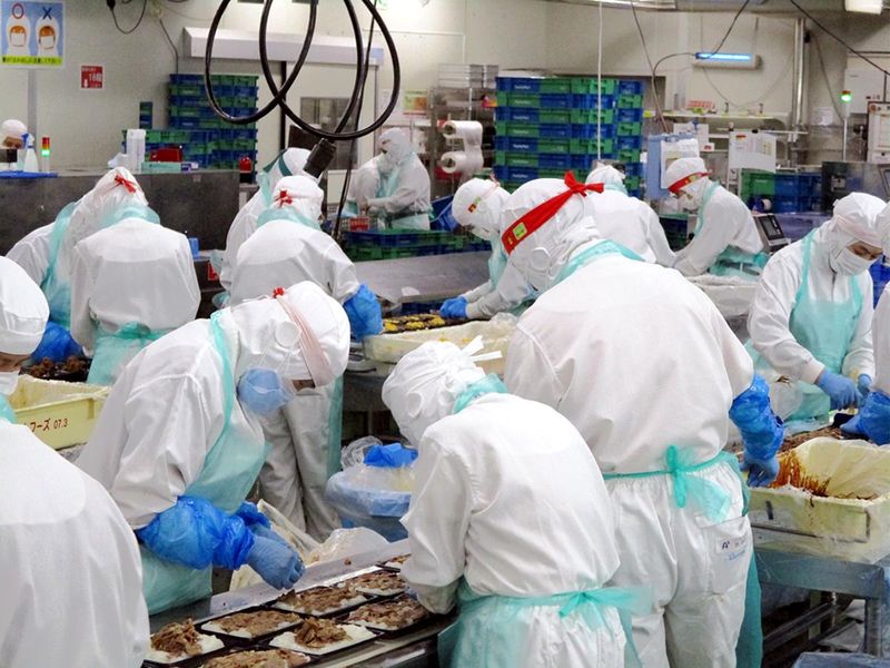 コンビニ弁当を作る食品工場のおむすび製造スタッフ