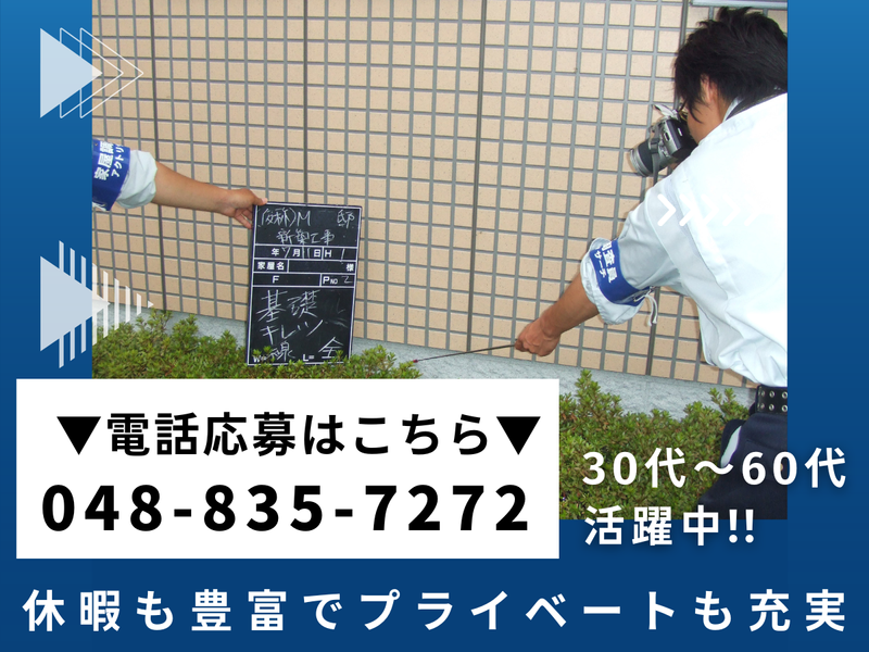 選考プロセス <応募・お問い合わせ> ①ネットからのご応募 {応募}ボタンより簡単に ご応募できます! ご応募より2~3日以内に、 お電話・メールにて 折り返しご連絡をいたします。 ②お電話での応募・お問い合わせ 048-835-7272まで 「求人票を見た」と お問い合わせください。 <応募後の流れ> ①応募後に、お電話・メールにて 日程確定のご連絡 ②面接! ③採用! →勤務開始日は相談に応じます <面接地> 面接は勤務地で行います。 普段の格好でお越しください!