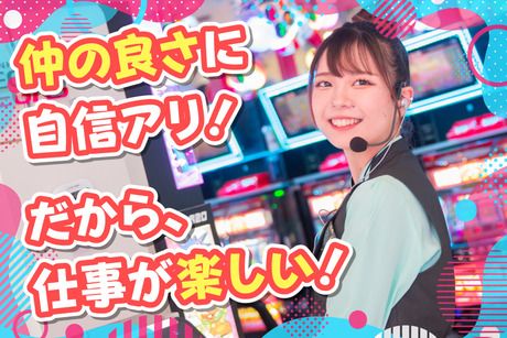 仕事内容 << ”働きやすさ”と”高収入”、どちらも叶う >> 前月にシフトを調整できる「希望シフト申告制」! 「家事や育児と両立しながら働きたい」 「学校が休みの土日中心に入りたい」 など、ライフスタイルを考慮したシフトが叶います! また、研修初日からでも時給1100円~スタート! 更に22時以降は時給1375円~と時給UP! 働きやすさと高収入どちらも叶います◎ << 未経験スタートの方も大歓迎! >> 《主な業務内容》 ・お客様のお出迎え・お見送りのご挨拶/ご案内 ・計数機対応 ・遊技台のトラブル対応、清掃、除菌 ・お呼び出しアナウンス ・賞品カウンターでの交換対応 など パチンコ台は全台パーソナルの為 玉箱交換がなし! 腰に負担がかからないのも嬉しいポイント♪ << 充実の研修有!同年代の先輩も多数 >> 接客が初めての方やバイトデビューの方も大歓迎! 未経験スタートでも、 安心して始められる教育体制が整っています。 *基本の接客対応マニュアルあり! *先輩スタッフがトレーナーとしてしっかりサポート! *同年代のスタッフが多く、馴染みやすい環境! *高時給&充実の福利厚生で働きやすさバツグンです!