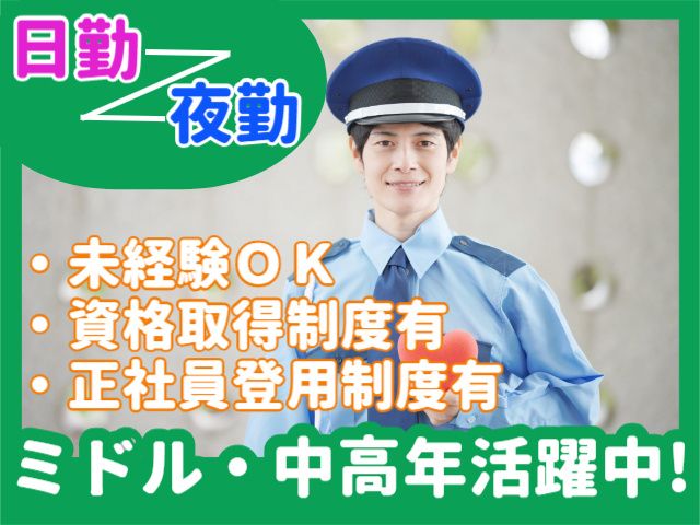 【保険制度】 雇用保険、労災保険、健康保険、厚生年金 待遇 ・社会保険完備 ・WワークOK ・制服及び装備品一式支給 (熱中症対策として空調服を貸与致します) ・有給休暇有(法定通り) ・正社員登用制度有 ・マイカー通勤可 ・駐車場有 ・受動喫煙対策有(敷地内禁煙) ・再雇用制度有 ・各種手当有(検定手当・グレード手当) ・国家資格取得制度有