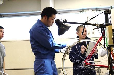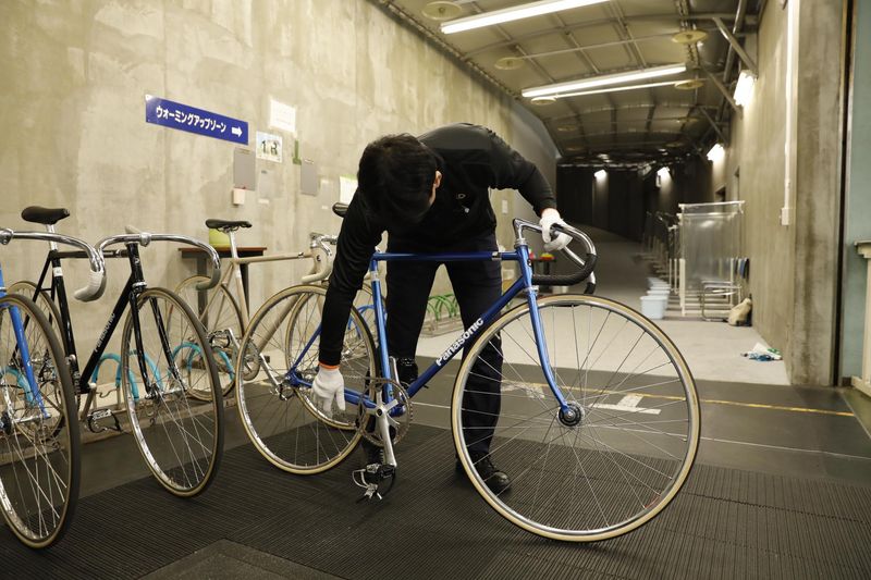 競輪場で競輪選手の競技用自転車の検査・整備