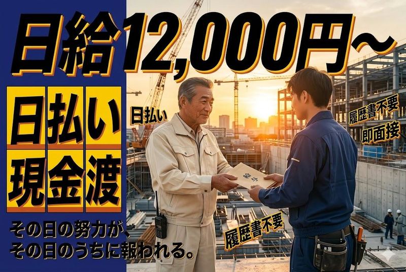 仕事内容 【電話で応募OK】0120-565-576 「人生の再スタート、全力で応援します!」 明日からの「住む場所」「温かいごはん」「安定した仕事」すべて用意して待っています。 ■ 選べる仕事内容 あなたの経験や希望に合わせて、最適な現場をお任せします。 経験者の方(解体工・重機オペ・鍛冶工など) 即戦力として、そのスキルを高く評価します。「驚きの経験者手当」を多数用意しているので、前職以上の待遇も可能です! 未経験者の方 現場スタッフの「かんたんなお手伝い」からスタート。 ・頼まれた道具を渡す ・ホコリが立たないように水をまく ・手押しカートで材料を片付ける ・現場の草抜きをする …など 重たい機械の操作や難しい作業は一切ありません。 やり方はすべて丁寧にお教えします。 ■ 「カバン1つ」で来てください!充実の生活サポート 仕事を頑張るためには、まず生活の安定から。当社では以下の待遇を完備しています。 きれいな個室寮完備: すぐに入居可能です。 あたたかい3食付き: 毎日の食事に困ることはありません。 必要なものは全貸与: 道具や服はすべて貸し出し。作業着は新品をプレゼントします。 オシャレも自分らしく: 髪型・髪色自由、ピアスもOK。 ■ 当社で働くメリット 仕事量が安定していて「食いっぱぐれない」 地下鉄建設、大型イベント準備、駅周辺の整備など、現場は常に豊富です。「稼ぎたいのに仕事がない」「待機ばかりで給料が減る」という不安とは無縁です! 過去の経歴は一切不問 「派遣を転々としていた」「転職回数が多い」「ブランクが長い」そんな先輩たちも、今では中心メンバーとして活躍中。あなたの「これから」を重視します。 ステップアップも応援! フォークリフトやガス溶接、重機運転などの資格取得を全額サポート。資格を取ればその分給料もアップします! ■ 応募について 「まずは話を聞きたい」だけでもOK!いきなりの面接も歓迎です。 こちらからお近くまで伺うことも可能です。 「何もない、持っていない。そこからでも始められる場所がここにあります。」 少しでも気になったら、まずは一本お電話ください!