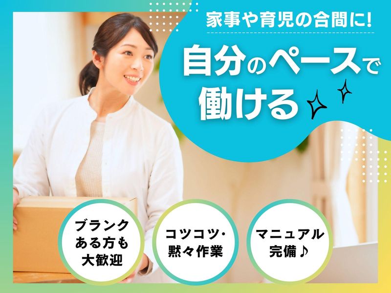 仕事内容 / 人気の在宅ワーク! 内職スタッフさん募集⭐ スキマ時間を有効活用 \ . -・-・-・-・-・-・-・-・-・-・-・- オススメPOINT✨ -・-・-・-・-・-・-・-・-・-・-・- ✅未経験・ブランクのある方も大歓迎! ┗イチから丁寧にサポートします。 ✅家事・育児や本業のスキマ時間に♪ ┗自分のペースで働けるお仕事! ✅無理なく続けやすい環境◎ ┗納期やノルマは相談しながら決めるので安心 ✅コツコツ作業が得意な方にぴったり! ┗居心地の良い自宅で黙々お仕事できる♪ ✅マニュアル・見本完備! ┗初心者でもすぐに覚えられる簡単作業です . . -・-・-・-・-・-・-・-・-・-・-・- お仕事内容 -・-・-・-・-・-・-・-・-・-・-・- *カレンダーの加工・封入作業 *両面テープ貼付け *販促物の加工 などの軽作業をお願いします! 難しい作業は無いので 軽作業のお仕事が未経験の方でも大丈夫♪ 内職だから私服でラクラク勤務! 「久しぶりのお仕事で不安・・」な方も しっかりフォローしていくので ご安心くださいね** . . -・-・-・-・-・-・-・-・-・-・-・- 主婦さん活躍中! -・-・-・-・-・-・-・-・-・-・-・- 30~40代の女性スタッフが活躍中! 「子育ても家事も楽しく頑張ってます」 「だけど、もう一度私らしく働きたい!」 そんな主婦さんが 多数活躍している働き方です** . <お子様の突然の発熱>や <学校行事>など 在宅ならではの対応もばっちり◎ . / まずはお気軽にご相談ください** \