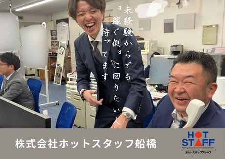 仕事内容 未経験から”稼ぐ側”へ/大手派遣会社の営業スタッフ募集!CM放映中・地域密着・転勤なし ”頑張りはちゃんと給料に反映されます。” 未経験OK! 当社のトップセールスは元営業未経験。 本気で稼ぎたい人 同世代に差をつけたい人 やった分は、ちゃんとあなたに返します。 営業経験ゼロから、月収アップを狙える環境です! 本気で勝ちたい人を待っています!!! ~~私たちは『千葉県No.1の派遣会社』を目指します~~ CM放映中★地域密着型派遣会社 【ホットスタッフ船橋】です! 千葉県船橋市にオフィスを構える当社は 14期目を迎えました。 おかげさまで千葉県内にグループ会社である ホットスタッフ成田、ホットスタッフ千葉を分社設立し、 今年秋ごろに流山支社を設立予定! オープニングメンバーチーム発足のため 新規スタッフを増員募集いたします★★ / 平均給与45万円!! \ 「夢のマイホームを購入した」「新車を購入した」 「年2回は家族旅行に行けるようになった」 働くメンバー全員が前職よりも収入が上がっています♪ |ホットスタッフで働くメリット| ■営業未経験者でも、2年目で月収50万円以上可能!! ■完全週休2日制!土日祝休みでプライベート充実!! ■転勤なし! ■支社長や管理職へのキャリアアップも可能! ■学歴・経験は不問!研修制度があるので安心!! <仕事内容> 「人材が欲しい企業×働きたい地域の求職者」をマッチングさせるお仕事です。 ●企業様へ採用情報のヒアリング どのような人材が適しているか、親身になってお伺い。 ●スタッフへお仕事紹介 自社に登録しているスタッフの希望条件を伺い、最適なお仕事を紹介。 ●スタッフ就職後のフォロー面談 働き始めたスタッフは、私たちの仲間としてしっかり支えます。 ●既存のお取引先様フォロー 時にはお茶を飲みながら、企業様のお悩みを聞いたり世間話をすることも! =================== <入社後の流れ> ●ステップ1 初日は座学研修! 派遣業界やホットスタッフの特徴など、基本的なことを学習します。 ●ステップ2 企業様・登録スタッフのマッチングまでの流れを把握。 先輩社員と一緒にお客様先への訪問や、登録スタッフとの面談について学習します。 ※研修期間中には仕事一連の流れを把握でるようになるはず◎ ●ステップ3 ひとり立ちは、入社2ヶ月が目安♪ それ以降でも疑問点・懸念点などがあれば、遠慮なく先輩社員など仲間に相談できるのでご安心ください! =================== <安心のフォロー体制> 座学研修では、派遣に関する業界知識・法令などを一から丁寧にお教えします。 その後のOJT研修では、実務を通じて仕事の流れを学んでいきます。 先輩と同行しながら顧客・スタッフさんへの対応を身につけていってくださいね。 困ったことがあれば先輩がサポートしてくれる環境なので安心してください! <キャリアアップについて> 当社には「年功序列」という言葉は存在しません。 「個人の成果・結果は正当に評価している」と胸を張って断言できます。 入社歴・年齢は一切関係ナシ!一人一人をしっかり評価!実際に、入社1年で支社長になった社員も! 一人一人の結果に応じて、半年に1度の人事では積極的にポストを提供するのも当社の強みです。 ※キャリアステップ例 入社2年:主任 入社3年:係長 入社5年:課長または支社長 入社10年:部長またはエリアマネージャー PR・職場情報 <ホットスタッフの魅力> ■営業未経験者でも、2年目で月収50万円以上可能!! ■完全週休2日制!土日祝休みでプライベート充実!! ■営業力を身に付けたい方におすすめ! ■支社長や管理職へのキャリアアップも可能! ■学歴・経験は不問!研修制度があるので安心!! <喫煙所> 喫煙所あり(屋内) ■試用・研修期間 試用・研修期間:2ヶ月 試用・研修期間の条件:本採用と同じ \\お人柄重視の採用を宣言します!// これまでの過去は関係ナシ。 今のあなたを最大限アピールしてください! 車の免許さえあれば、営業の経験や学歴は不問です!! ★当社で働く100%が未経験者★ \\オススメPOINT// 100%中途入社 面接後即日勤務OK 学歴、職歴一切不問 結果を次月歩合として【毎月】給与へ 有休積極取得 年間休日125日 転勤なし 確実に習得できる教育制度 完全土日祝+大型連休あり 業界TOPクラスの知名度 入社1年で管理職のチャンスあり \こんな方にもオススメ/ 法人営業・個人営業・ルート営業・コンサルティング営業の経験者 自社商品・サービスの企画営業職経験者(無形商材・有形商材不問) 新規営業・既存営業・内勤営業に興味のある方 \こんなスキル・能力も活かせます/ コミュニケーション能力パソコンスキル・マーケティングスキル・プレゼンテーションスキル コミュニケーション能力マルチタスク ☆おススメポイント☆ ・勤務期間:長期 ・未経験者歓迎 ・高収入 ・土日祝休み ・駅近く ・室内分煙 ・通勤手当支給※規定あり ・退職金制度あり 求人ID:260241420001 拠点コード:株式会社ホットスタッフ船橋