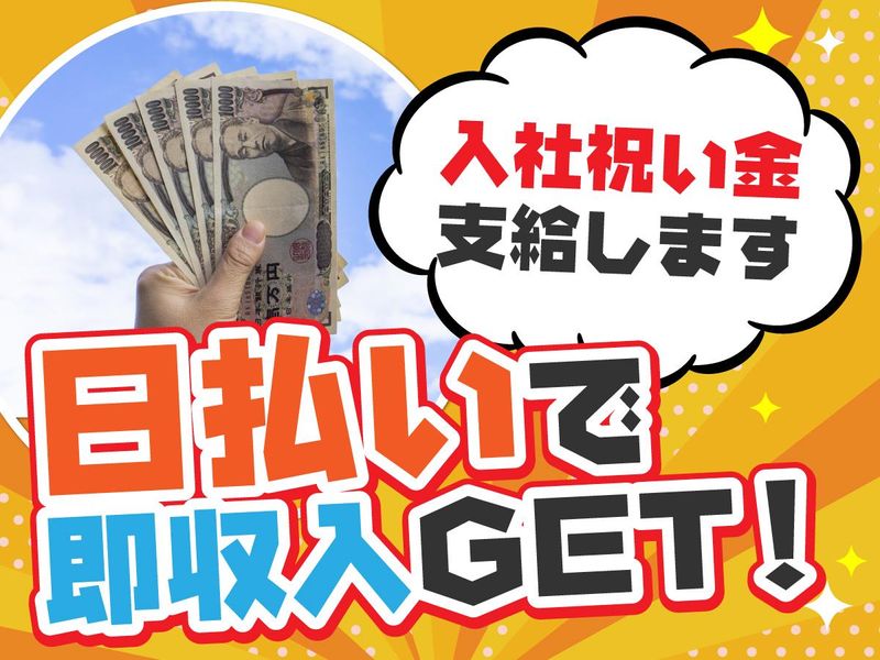 求めている人材 ★「夢は諦めたくない」そんなフリーターさん、大歓迎。 ★「年金だけじゃ足りない・・・お小遣いを稼ぎたい」 そんな想い、ここで叶えてほしい。 ★未経験でも問題なし。むしろ9割がゼロからのスタート。 ★学歴・経験・性別、一切問いません。 <<こんな方も大歓迎です!>> ★今の生活にプラスαの収入が欲しい方。 ★日払いで“今日働いた分が今日のお金になる”働き方をしたい方。 ★生活を立て直したい/新しい環境で再スタートしたい方。 ★副業・Wワークで効率よく収入UPしたい方。 ★もちろん経験者も即戦力として大歓迎!経験者優遇あり。 ★ブランクあってもOK。「やってみよう」の一歩を全力応援。 ★「ちょっと気楽に働きたい」「無理なく続けたい」そんな方にもピッタリ。 【活かせる経験】 接客/販売/工場作業/建設現場/軽作業/清掃/サービス業/倉庫作業 フォークリフト免許/準中型・中型免許 など ※もちろん「まったくの未経験」でも問題なし!