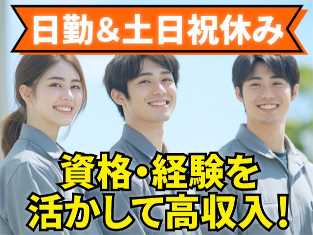 資格・経験 ・太陽光・蓄電池工事経験 ・普通自動車免許 ・第1種電気工事士、1・2級電気工事施工管理技士あれば尚可