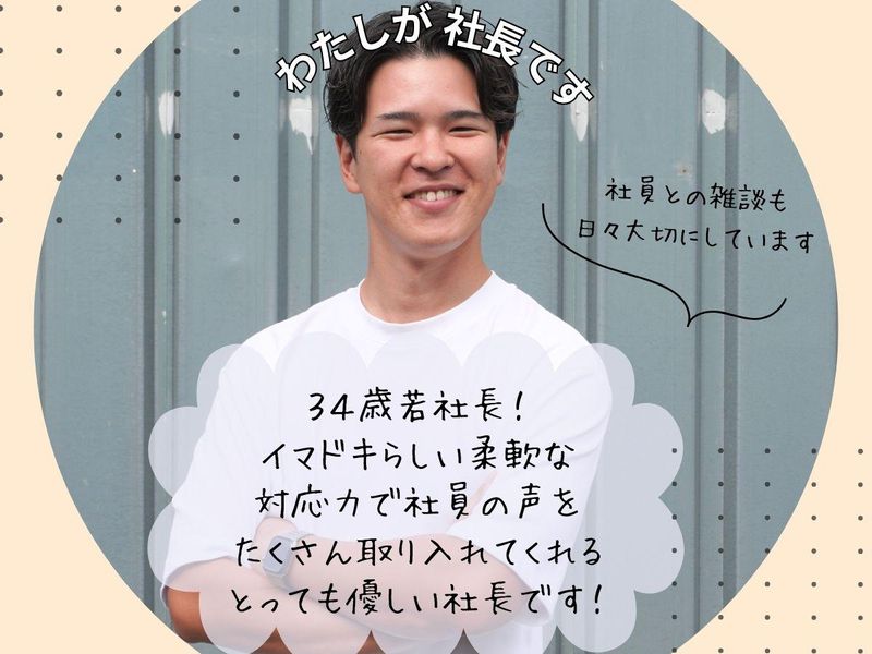仕事内容 ==================== ★年間休日127日の土日祝完全休み! ★有給消化率100%! ★2026年5月には新工場&新事務所が完成予定♪ ★月の平均残業時間は10h以下! ★その他面白い福利厚生がいっぱい! ==================== ▼▼ この求人のPOINT! ▼▼ ・プライベート重視で勤務しやすい! ・スタッフ同士の仲が良い! ・待遇充実(昇給あり、賞与年2回あり) ・住宅手当、家族手当などもあります! ⭐社長からのメッセージ  ̄ ̄ ̄ ̄ ̄ ̄ ̄ ̄ ̄ ̄ ̄ ̄ 弊社の求人を見ていただきありがとうございます! 社長の東久保です! 弊社は産業廃棄物の収集や処理事業から スタートしております。 現在では産業廃棄物を燃料に変える リサイクル事業がメイン事業であり 「100年後の地球をつくる。」を 目指して日々、挑戦し続けています。 コロナ禍で売上が下がる中、 復活の起爆剤として立ち上げたのが 今やメイン事業となった 産業廃棄物の燃料化事業です。 産業廃棄物を加工し燃料にしているため 脱炭素社会の実現に貢献する代替燃料 としてこれからも需要が増えることが 期待されています。 2026年5月には 工場と事務所を隣の土地に移転し、 新オフィス立ち上げの予定です! もちろん需要が増えて、という理由もありますが 「社員がより快適に働けるように…」 「家族にも自慢できる職場を目指して…」 という想いを込めた決断です。 そんな弊社のこれからの事業拡大を 担っていただける方を募集します✨ 会社の雰囲気が気になる方はTikTokをぜひチェックしてみてください! 皆さまとお会いできる日を楽しみにしています♪ ――――――お仕事詳細―――――― ・企業などから出た資源を利用した燃料の製造 ・処理設備の機器操作 ・フォークリフトや重機の操作 「もっとこうしたい!」 そんな社員の声をカタチにしてくれる社長がいます! スタッフ同士も仲が良く、TIKTOKやSNSを楽しく運営しています。 また、自社から出た廃棄プラスチックを使って サステナブルなアクセサリーを製作している「hana jewelry」も立ち上げています。 職場の雰囲気が知りたい方は一日体験もOK!(給与支給) お気軽に連絡ください♪
