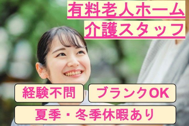 【アピールポイント】 有料老人ホームの介護職員募集! ●経験不問・ブランクOK! ●夏季・冬季休暇あり ●有給休暇は1時間から使用OK