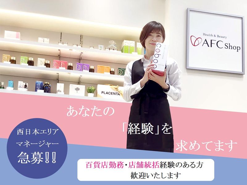 求めている人材 <必須> ※高卒以上 ※基本的なPC操作(Word・Excel・PowerPoint)ができる方 <歓迎> *健康・美容分野に興味がある方 *百貨店での勤務経験や、百貨店との折衝経験がある方 *店舗管理や運営、統括を経験された方 *販売・サービス業の経験がある方 <こんな方にもオススメ> 業種問わず店長やマネジメントを経験された方や、スタッフの育成やフォロー業務を経験された方なども大歓迎! ▼「職場が近いから」など、応募理由は何でもOKです。 丁寧に教えますので、安心してご応募ください。 「応募は迷っているけど、どんな仕事内容なのか知りたい」だけの問合せもOKです! 未経験/第二新卒/ブランクがある方/主婦(夫)/子育てから復帰/正社員勤務経験なし 上記いずれかに当てはまる方も当社エーエフシーは温かく歓迎・応援いたします。