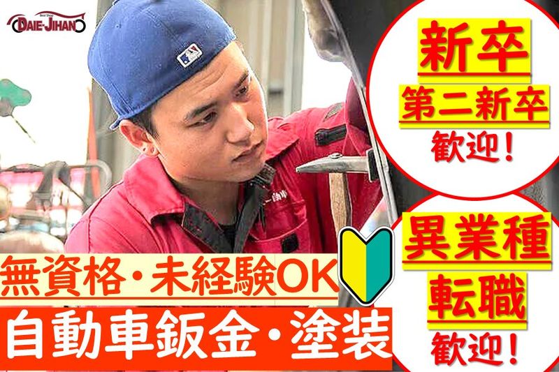 【アピールポイント】 無資格・未経験OKの自動車鈑金・塗装スタッフ! ■資格取得支援制度あり! ■異業種転職歓迎! ■新卒・第二新卒歓迎!