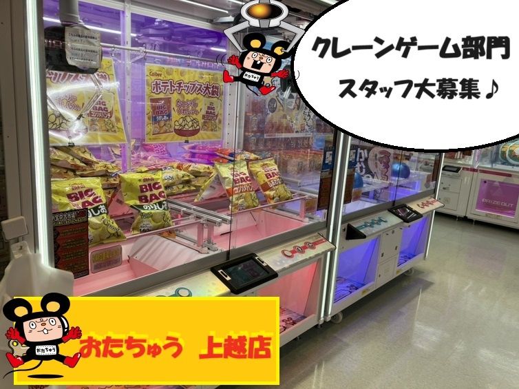 仕事内容 UFOキャッチャー・クレーンゲームスタッフ アルバイト・パート募集 おたちゅう上越店 リユースアミューズメントショップ ゲーム・アニメ・ホビーが好きな方大活躍。 「おたちゅう上越店」は、 フィギュア・トレカ・ホビーの買取販売と、 クレーンゲームなどのアミューズメントを 併設したリユースアミューズメントショップです。 お客様に“ワクワク”を届ける クレーンゲーム・UFOキャッチャーコーナーの 接客スタッフを募集しています。 〇ポイント ・アルバイト・パートでも昇給制度あり ・社員登用制度あり (将来は正社員も目指せます) ・交通費支給・マイカー通勤可 ・髪色・服装相談可 (自分らしいスタイルで勤務可能) ・週数日から勤務OK、シフト柔軟対応 ・未経験OK、学歴不問 〇こんな方におすすめ ・UFOキャッチャー・クレーンゲームが好き ・ゲーム・アニメ・ホビーが好き ・接客やアミューズメントの仕事に興味がある ・上越市で楽しく働けるアルバイトを探している ・学生、主婦(夫)、Wワーク、フリーター歓迎 〇仕事内容 リユースアミューズメントショップ内業務 おたちゅう上越店の クレーンゲーム・UFOキャッチャーコーナーで、 接客や簡単な運営サポートをお願いします。 ・景品の補充・入れ替え 人気フィギュアやぬいぐるみなどを 並べるシンプルな作業です。 ・景品の位置調整 アームが届かない位置に動いた景品を戻すなど、 遊びやすく整えます。 ・お客様対応 「景品が取れない」「遊び方が分からない」 などの声に笑顔で対応します。 ・清掃・メンテナンス クレーンゲーム機の消毒や簡単な点検を行い、 清潔で快適な環境を保ちます。 勤務時間・シフト 早番 8:30~17:30(休憩60分) 遅番 15:30~24:30(休憩60分) 希望シフト制・相談可 学生・主婦(夫)・Wワークも可 〇勤務地 おたちゅう上越店 新潟県上越市西城町2-6-11 https://otakara-joetsu.com/