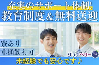 【保険制度】 雇用保険、労災保険、健康保険、厚生年金 待遇・福利厚生 \充実した福利厚生/ ◎社会保険・雇用保険完備 ◎有給休暇有(6ヶ月経過後、10日付与)※規定あり ◎残業手当 ◎交通費支給(規定内) ◎確定拠出年金制度 ◎週払い制度(週3回対応) ◎お友達推薦制度あり(規定有り) ※1名につき3万円~10万円臨時給与として支給 ◎車(マイカー)・バイク通勤可(無料駐車場あり) ◎ロッカー・休憩室利用可 ◎売店あり ◎冷暖房完備 ◎作業服貸与 ◎食事持参可 ◎仕出し弁当有り(1食320円) ◎寮完備 ◎無料送迎バスあり ◎福利厚生プログラム (宿泊、グルメ、ショッピングなど大幅割引が受けられる10万アイテムのメニューがあります。)