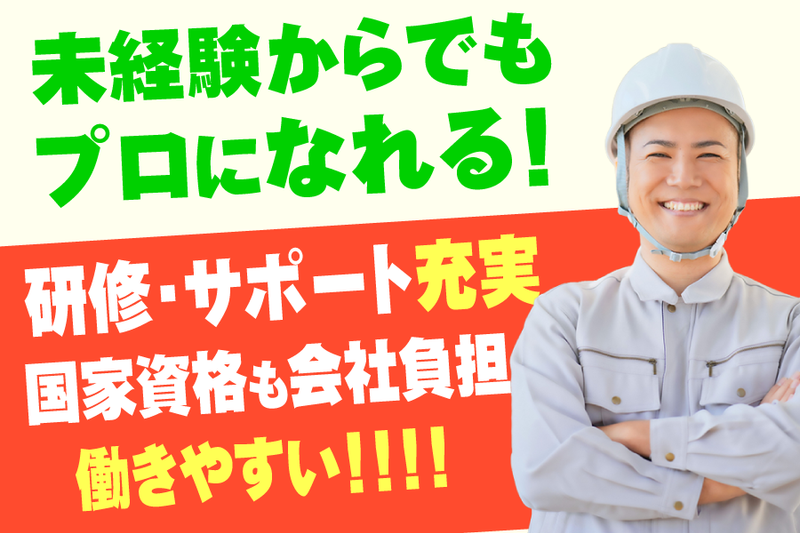 【保険制度】 雇用保険、労災保険、健康保険、厚生年金 待遇・福利厚生 【福利厚生】 各種社会保険完備(雇用・労災・健康・厚生年金) 通信手当(1,000円~5,000円) 通勤手当 健康診断 制服・作業服貸与、安全靴・ヘルメット支給 資格取得奨励金 退職金共済加入 資格取得支援制度(記載あり/全面的にサポート) 社内イベント(年1回ゴルフイベント/懇親会) マイカー通勤可