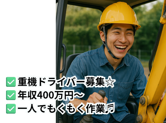 求めている人材 ■学歴不問! ■大型重機の操作経験者 もしくは ■大型重機の技能講習終了者(実務無くてもOK) ■普通自動車年許(AT限定可能) <歓迎条件> ・自動車整備、機械整備経験 ・重機免許