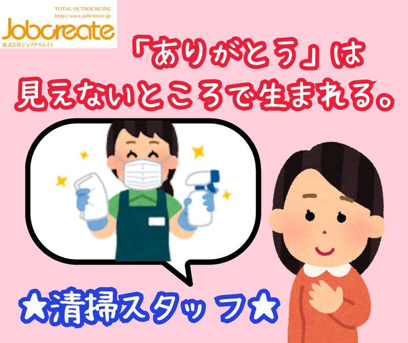 仕事内容 No.62118 ★嬉しいシフト制♪お休み選べる! ★短時間なので、Wワーク・扶養内OK! ★未経験大歓迎! ★女性活躍中の現場です♪ ★早い者勝ち!枠埋まり次第終了! ★嬉しい駅チカ!京都駅からのアクセス◎ ★モクモク清掃スタッフ☆ ★嬉しいシフト制♪ ☆京都駅前の一流ホテルでのかんたん清掃スタッフ大募集☆ ◇お仕事内容◇ ホテルの館内でのかんたん清掃業務をお任せ! 具体的には、 ・共用エリア(ロビー・フロア・休憩室など)の掃き拭き掃除 ・ゴミ回収 ・洗面台やお手洗いの掃除 ・備品補充 未経験でもOKです! お掃除が好きな方にピッタリ♪ 主婦さん・シニアさんも大歓迎☆ ◇職場環境◇ 20代~60代までシニアも活躍中! 女性多く活躍中の現場です! キレイなホテルでのお仕事です! わからないことも気軽に質問できる環境です♪ 最短当日面接も大歓迎♪ 即日勤務もご相談OKです! まずは現場見学行ってみませんか? ◇アピールポイント◇ 無理なく続けられる、安心のお仕事♪ コツコツ派の方大歓迎☆快適空間をつくるお仕事! 経験ゼロから始められる清掃ワーク! モクモク作業で自分のペースで働ける! ◇勤務形態◇ 【時間】 8:00~12:00 (休憩なし) 実働:4時間 【休日】 最低でも週4日 シフト制 (月・水・木・金勤務) 土日どちらかお休み相談もOK♪ まずは希望をご相談ください! ◇月収例◇ 週5日勤務の場合 1250円×4H×20日=100,000円+交通費全額支給 週4日の場合 1250円×4H×16日=80,000円+交通費全額支給 ◇アクセス◇ JR「京都」駅から徒歩3分 地下鉄「京都」駅から徒歩2分 地下鉄「五条」駅から徒歩16分 ◇交通費◇ まずは通勤方法をご相談ください! *公共交通機関の場合:原則 交通費全額実費支給 **-** ジョブクリエイトは 大阪府高槻市にある派遣会社です。 製造、倉庫内、梱包などの軽作業はもちろん オフィスワークや販売促進など 豊富な人材サポートを行っております! 阪急高槻市駅から歩いて3分♪ 来社不要のWEB面談も実施しております! ご希望の方はお気軽にお申し付けください☆ **-** <自宅から面接ができるWEB面接実施中> <apアプリポイントプレゼント!> 日々のお仕事でポイントがたまり、 日用品や家電、食品、旅行券などの 商品と交換していただけます! ※土日祝日に頂いたご応募に関しましては、 翌営業日に順次対応させていただきます。 **-**