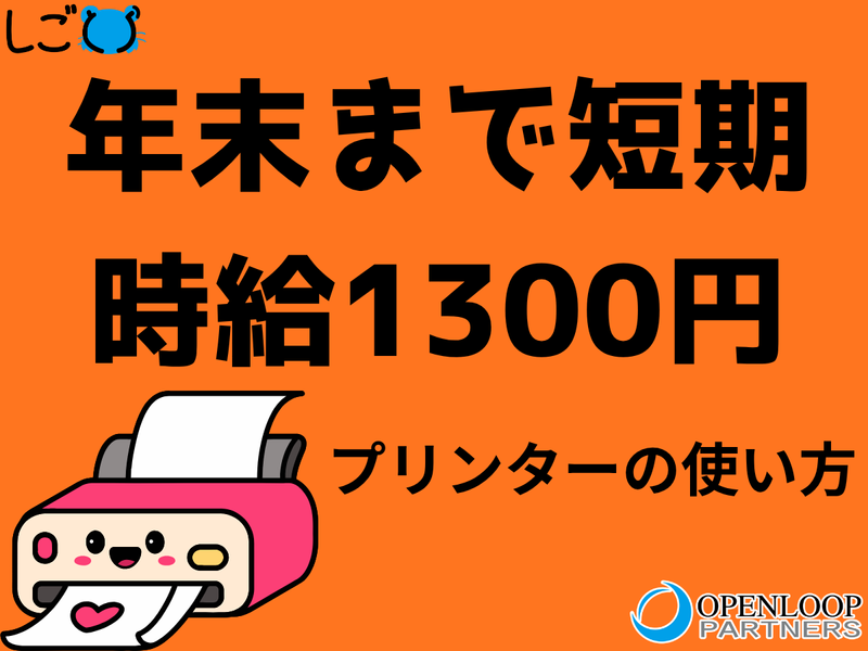 仕事内容 \25日(火)スタート!短期×時給1300円/ プリンターの“使い方”案内だけ◎ 週4~・私服OK・日払いOK 「すぐ働きたい」「短期でしっかり稼ぎたい」方向けのお仕事です。 ◆時給1300円+前払いOK(規定有) ◆週4~5日/日祝固定休み ◆服装・髪色・ネイル自由 ◆未経験OK/マニュアル完備 ◆来社・履歴書不要 → 自宅で登録OK まずは条件が合えば、それだけで応募してOK◎ 【仕事内容】 プリンター・スキャナの 「使い方」 に関する問合せ対応です。 ▼問合せ内容例 ・紙が詰まった ・インク交換の方法 ・電源が入らない → FAQやマニュアルを見て案内すればOK! ▼安心ポイント ・難しい内容はリーダーへすぐ相談OK ・折り返し対応も可能 ・クレーム少なめ ・座り仕事で負担少なめ 未経験でも始めやすい、シンプルな受信業務です。 【期間】 2025/11/25(火)~12/31(水) 応募ボタンから必要情報を入力するだけでOK! 履歴書・来社不要でカンタン登録 登録メールが届くので内容をご確認ください。 「話を聞くだけ」でも大歓迎です!