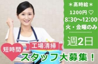 仕事内容 ――――――――。・◆・。―――――――― 火・金の週2日だけ! 効率よく稼げるお仕事♪ 空いた時間を有効活用して稼ぎませんか? 午前中のみなので… Wワークでの働き方も可能! 未経験歓迎! いつもの家事感覚でOKです◎ ――――――――。・◆・。―――――――― 【富士市南松野の工場でスタート】 工場内で通路やロッカー、お手洗い等の クリーンスタッフとして勤務して いただきます♪ 適度に体を動かして働こう♪ ★火曜・金曜のみ! 週2日~OKなので、家事との両立も 楽々できちゃうライフスタイル可能◎ ★高時給1200円! 短時間でもしっかり収入GET♪ ★午前中だけでOK! Wワークでもうひと稼ぎたい方も歓迎◎ ★交通費もしっかり支給! 余計な出費を気にすることなく働ける♪ ――――――――――――――――――― 【ここがポイント!】 富士市の西側なので、清水区からの 通勤もラクラク可能です♪ ★JR蒲原駅から車で20分 ★JR興津駅から車で29分 ★JR清水駅から車で32分 富士・富士宮方面からも、もちろん 通いやすい! ★JR富士川駅から車で13分 ★JR富士宮駅から車で15分 ★JR西富士宮駅から車で16分 ★JR富士駅から車で18分 ―――――――――――――――――――